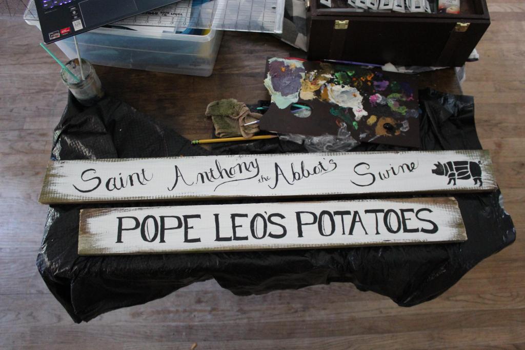 The new pigs arrived over the weekend. I didn’t have time prior to prepare the blessing or the things I want for saintly intercessions, but when things when a little haywire, I knew exactly who turn to, to ask for extra prayers! The signage is made and ready to be installed after we get the pigs situated where they will spend the summer. Acknowledging our brother in Christ, St. Anthony (or any of the saints), stresses our dependence on others for wisdom and knowledge, our need for help, that we are not just individual believers, but part of a Body.
