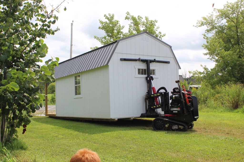 I decided not to fret about the definition and focus on prayer and getting everything established. It took plenty of work. The building we ordered was actually considered a “playhouse”, and we were able to customize things like the number of windows, whether it had a loft, how big the loft was, and the dimensions of the overall structure. It took about 6 weeks from the time we ordered, until it was built, and waited another two weeks for an available delivery date. While we waited, the ground was scraped and leveled, a gravel pad put in, and everything was compacted with a plate compactor. The building was delivered on a long semi-truck, and the delivery driver unloaded the shed and moved it into place using a little building mover, which is sort of like a little forklift with skids.