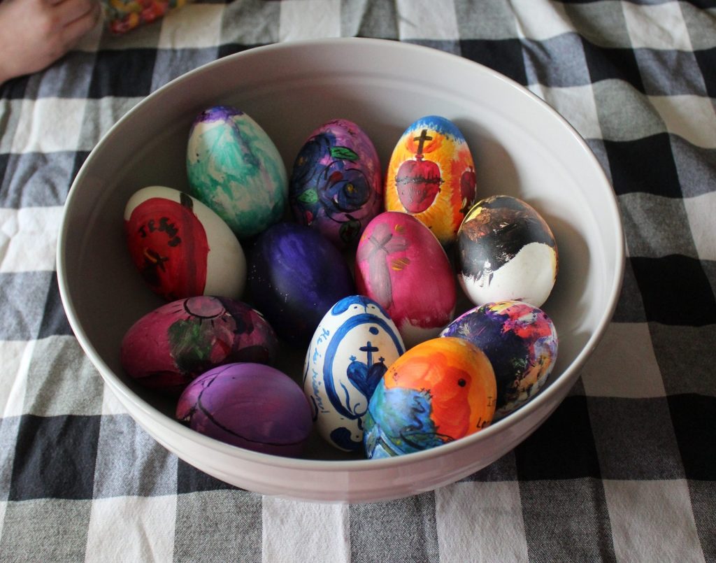 Now, to me, that’s a much better story than “the Easter bunny” delivers them! The red egg not only reminds us of the miracle of the resurrection, but of Mary Magdelene’s bold faith. The red has come to symbolize the Blood of Christ, His victory over death, new life, and renewal. The egg itself holds meaning for us as Christians, as we can see from the story above. The shell represents the sealed tomb, and cracking the egg represents Jesus’ resurrection.